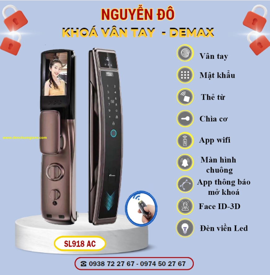 Khoá vân tay cửa gỗ Demax SL918 AC màu Đồng cổ tiêu chuẩn Đức với 9 tính năng nổi bật