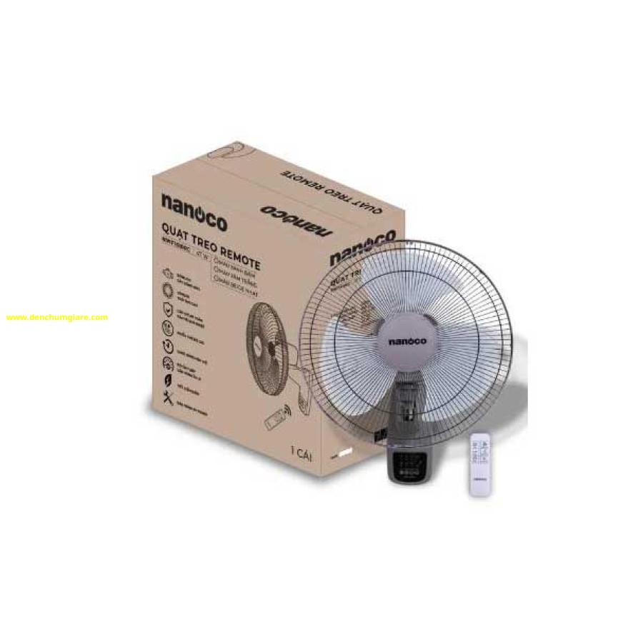 Quạt treo tường có remote màu xám Nanoco NWF1610RC-G